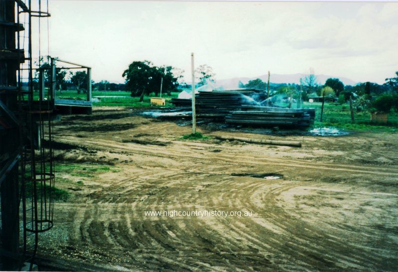 Ashfield Sawmill, 1996. Last days before closing day. Log Yard – the last of the logs. To the left is the access ladder by which the chip-hopper was reached.