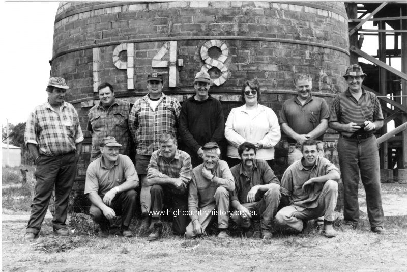 Ashfield Sawmill just before the closing of the mill. Back row left to right: Adrian Lewis, Robert Skipper, Shane Foots, Greg Warhurst, Pat Martin, Brian Davies, Bill Ward. Front: Peter Martin, Bob Jones, Ken Steers, Ivan Campbell, Scott Frewster.