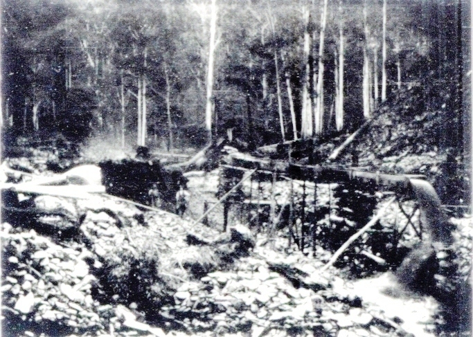 Bennett’s sluice claim. Bennett’s Hydraulic Sluice on the Jordan above Jericho – circa 1910.