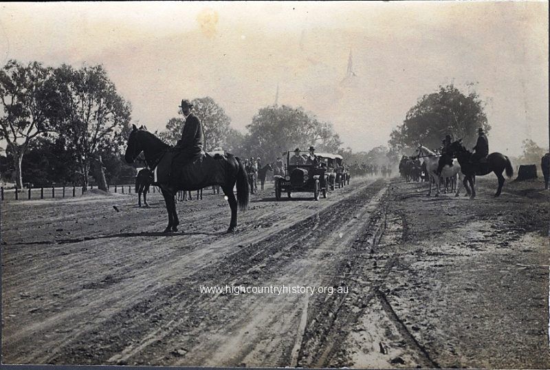 Coming into Mansfield – The local district’s horsemen and women form a guard of honour for the arrival of Archbishop Mannix.