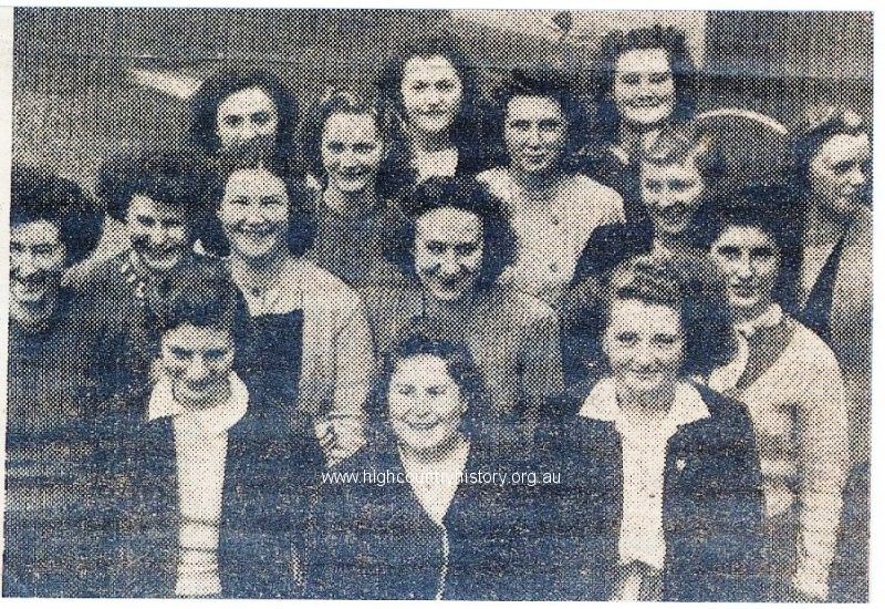 Employees at J. Boag’s Shirt and Pyjama Factory. BACK ROW: Marion (McColl) Meehan, Norma (Morris) McDougal (Snowy), Mary (McIntosh) Whitlingslow, Unknown, Unknown, Margaret (Pop) Murphy, Dorothy (Walsh) Britton. MIDDLE ROW: June (Owens) O’Brien, Tessa Briscoe, Noreen Hogarth (Egan), Marie (Fraser) McConnell, Unknown, Bonnie (Crocker) Purcell. FRONT: Unknown, Gwennie Thorpe, Unknown.