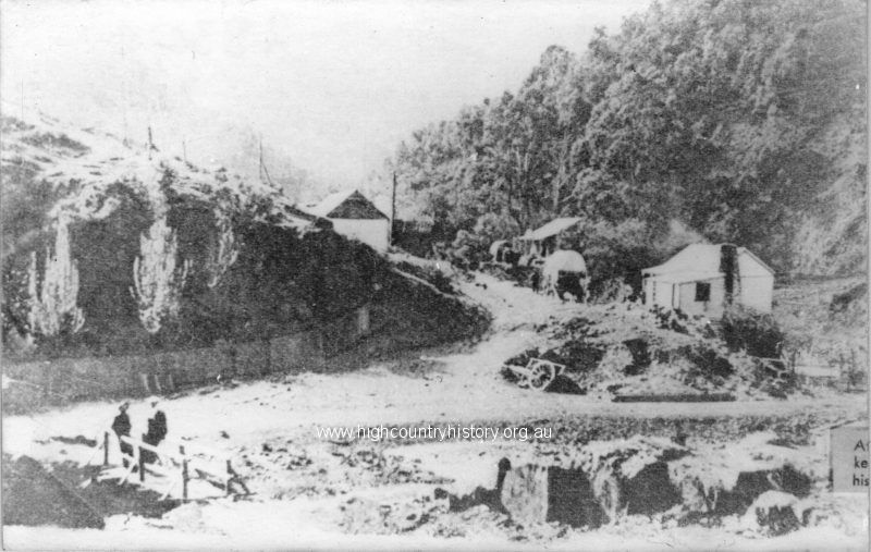 Gaffneys Creek. Gaffneys Creek is a mining locality 47 km. south of Mansfield on the road to Woods Point. The distance by road is much further. Gaffneys Creek is situated in mountainous country, ascending both side from the creek valley. It is at the junction of Gaffneys and Raspberry Creeks. In 1859 Terence “Red” Gaffney from the Big River area east of Gaffneys Creek crossed a range and prospected for gold about twelve kilometres to north of the future Gaffneys Creek township. In the same year two prospectors crossed the range and found rich alluvial gold at Raspberry Creek. More prospectors followed in 1861, bringing in supplies by packhorse form Jamieson. Several villages were created along the creek valley, within the space of a few kilometres. The most northerly was Paradise Point, then Drummond Point, View Point, Raspberry Point and Castle Point. A Government surveyor amalgamated them as one name, Lauraville, after his wife. Lauraville was renamed Gaffneys Creek in 1900. By 1865 each of the four settlements had hotels. Two had a bank or banks and Drummonds Point had a police station and post office. Raspberry Point had a Catholic church, Castle Point an Anglican church and View Point a brewery. A school was opened in 1867. Reef mining rapidly overtook alluvial mining in importance. During the 1870s reef mining became uncertain as owners permitted miners to work the mines without payment, in return for miners keeping the gold from an initial good find. The owners moved back in when the initial find was exhausted. During the 1880s many mines at Gaffneys Creek were paying poorly, except for the A1 mine about five kilometres southwards. It became a long-running success while many of the others to its north were left unworked. During the 1920s the A1 mine’s production collapsed. Thereafter mining continued in the Gaffneys Creek area as new prospects were searched with varying success. The rise in the gold price from the 1934 currency revaluation encouraged the reopening of some mines and improved production came form the A1 mine. A1 Mining Settlement approached the rest of Gaffneys Creek in population numbers. Its school (1903) ran continuously until 1925 and intermittently in conjunction with Gaffneys Creek until 1959. In 1968 the A1 Consolidated Company withdrew from the mine and the equipment was bought at auction by a local syndicate. Within six months the syndicate, Gaffneys Creek Gold Mine N.L., found rich gold which lasted for eight years. In 1980 the Gaffneys Creek village was entered on the Register of the National Estate as a conservation area, comprising a distance of 2.4 kilometres along the winding valley. Most buildings were unoccupied, but represented good examples of gold-era miners’ cottages and stores. Included were a hall, stone retaining walls and a hotel which was burnt down in 1993. The numerous mine workings are approached through thickets of blackberries in some places. Gaffneys Creek was stated to have a population of about 1,000 in Baillere’s Gazetteer in 1865. The census populations were 502 (1871), 274 (1911) and 91 (1954). A population of 5 was stated in the Victorian Municipal Directory, 1994.