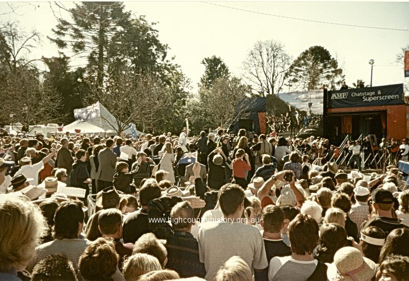 Gerald Egan with his equine partner, Smoke, riding through the crowd at Benalla, VIC to ignite the cauldron in front of more than 15,000 spectators at Benalla, VIC, 12 August, 2000 – Sydney Olympic Games.
