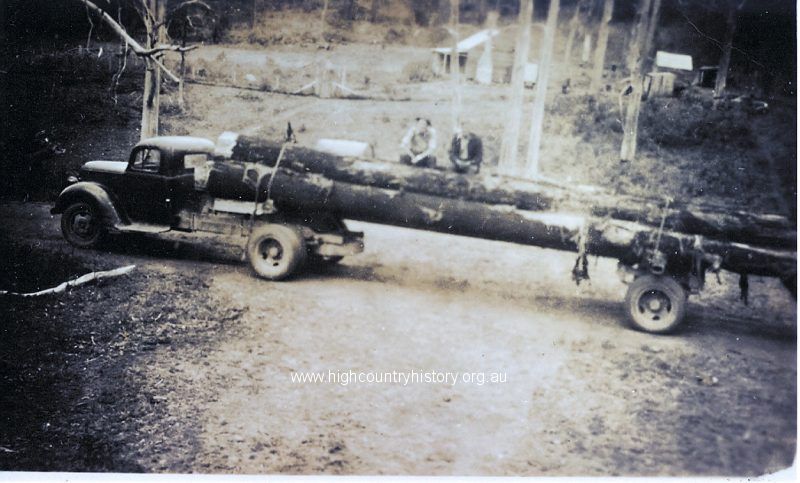 Jack Healy and Gordon Harrison. Wilson’s Log Truck (Ford) Benalla, VIC. Jack Healy’s house in the background. Toombullup