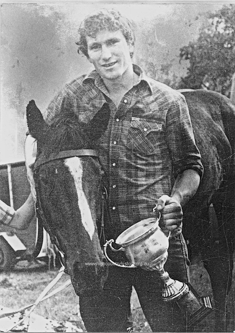 Local rider, Gerald Egan, is the hero of Mansfield following his clear win in the inaugural running of the Great Mountain Race of Victoria at Sheepyard Flat 30/11/1983. Gerald was a clear leader in the field from 21 other riders as he completed the challenging course on this horse ‘Maurie’.