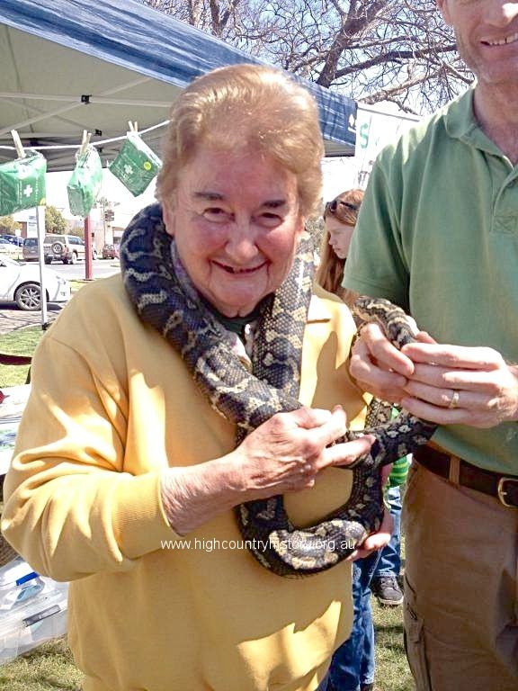 Mansfield Farmer’s Market. “Snake Smart”. Dave Wilkinson, introducing Muscles, his Darwin Carpet Python, who is approximately 5 years of age, to Maureen Davies, on the Medium Strip, at the Western end of High Street, Mansfield. Dave Wilkinson is Maureen Davies cousin.