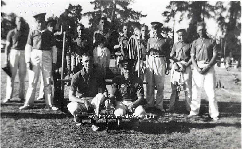 Mansfield Fire Brigate Team 1939. G Thompson (grocer), D O’Brien (grocer) C McIntosh (grocer), G Mutton (plumber), M Ryan, L Parsons (grocer), G Walsh, G Cummins, Charlie Parsons “Nuggett” H Cameron, B Parsons (mechanic)