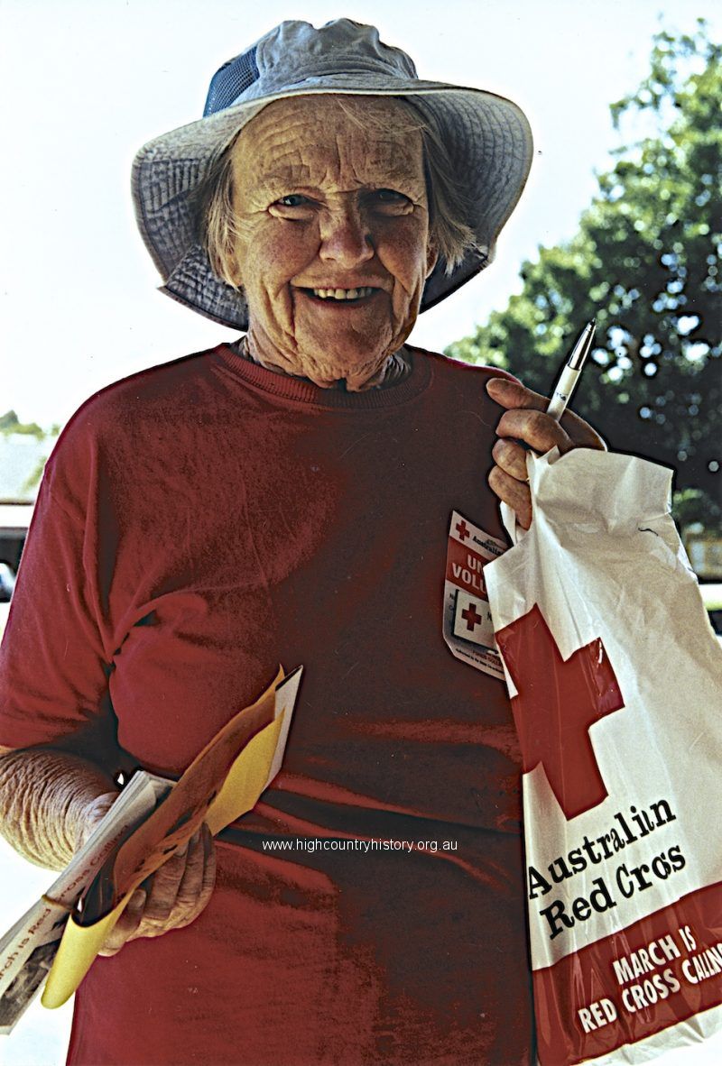 Red Cross calling. Margaret Adcock (Mrs. Alan Adcock) nee Walsh collecting for the Red Cross Appeal