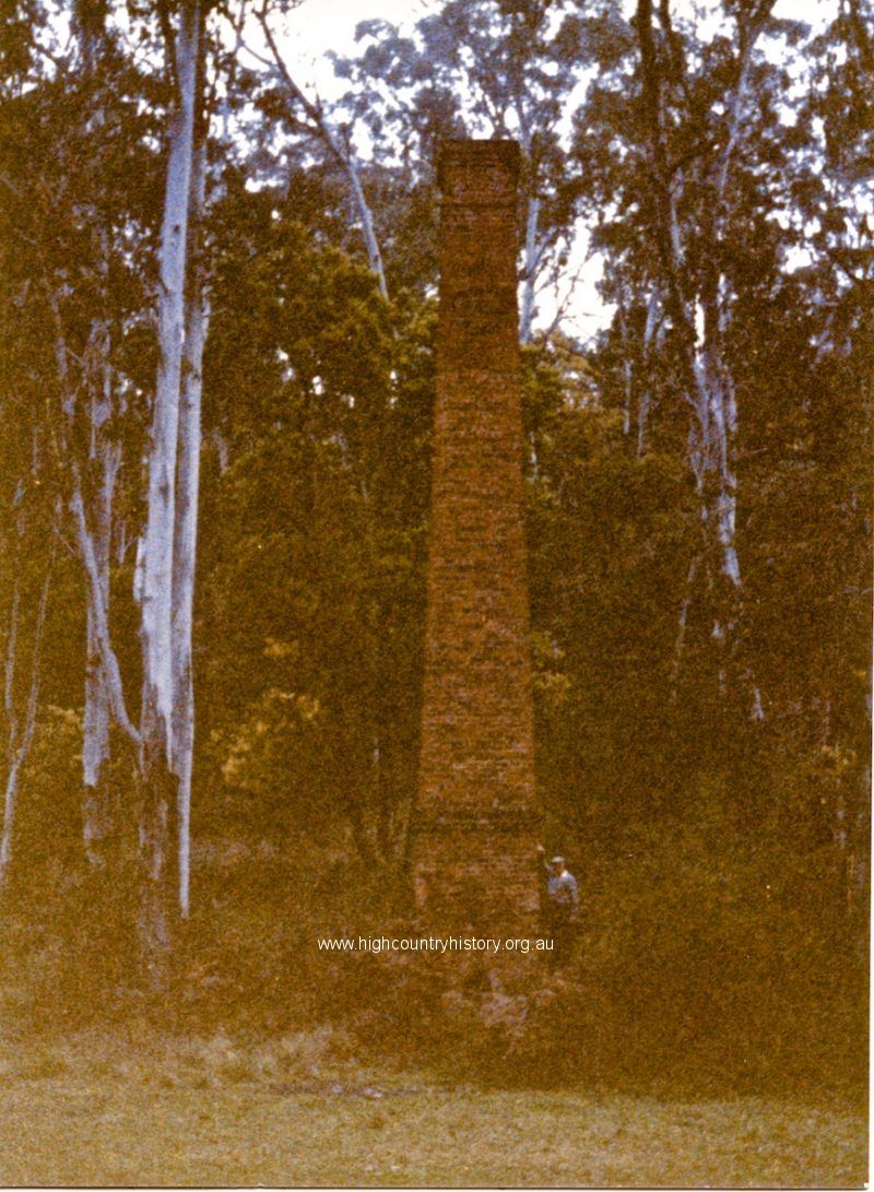 Sheepyard Flat – Bob Greenway at the base of the chimney at the old mine site. Photograph taken by Bob’s son Robert Greenway.