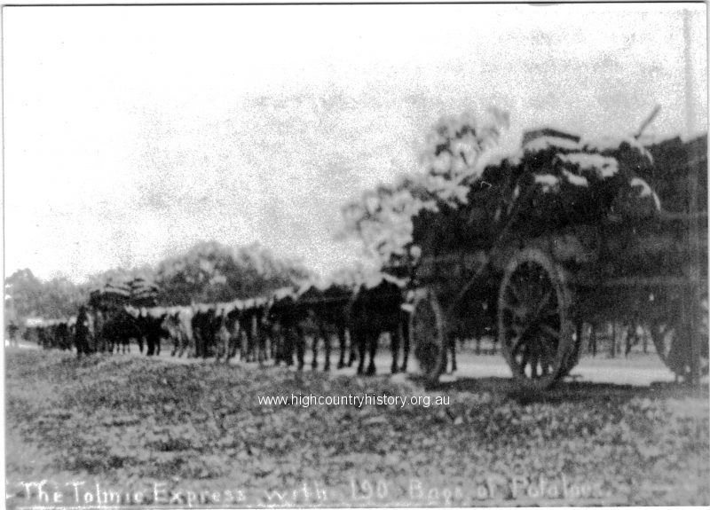 3 images. Tolmie Express – W. (Bill) Bullock and J. Byrne carting 190 bags of potatoes from Tolmie – 1911