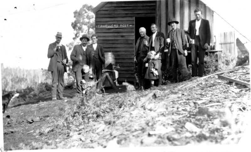 “Travellers Rest” – Jim Wright, Jack Martin and 2 children, Jack Healy, Bill and Ned McCashney, Tom Taylor and Jim Price