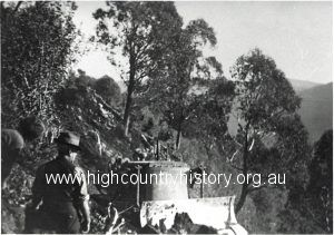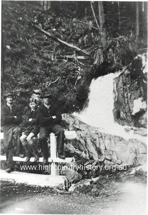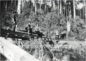 Christensen’s Sawmill. J Orr Neil Gardiner R Crozier on White Bridge – Mt Buller Road.