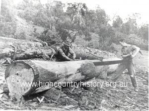 McCashney and Harpers Sawmill, Baker Creek – Jim Shanks and Alan McCashney using a cross cut saw