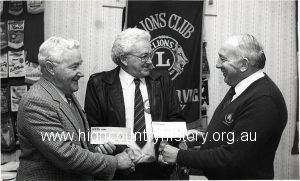 Gordon McMillan presents a cheque to Greg Wilder, Chief Executive Officer, Mansfield District Hospital.