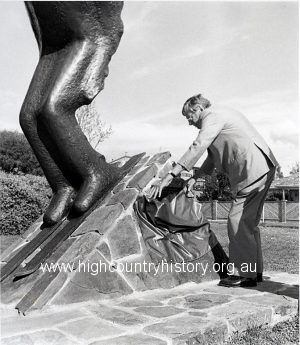 Roy Bostock unveiling “Spirit of the Skier”, High Street, Mansfield.