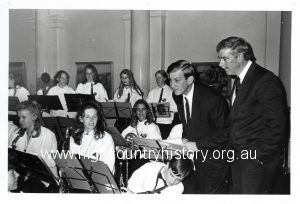 Jeff Kennett, Premier, and Pat McNamara, Deputy Premier, and local member with Youth Orchestra.