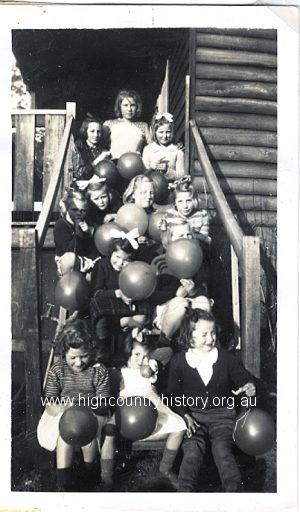 Group of children from Mirimbah Mill with balloons – Earnshaw Collection