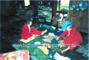 Ladies sewing portion of felt mural