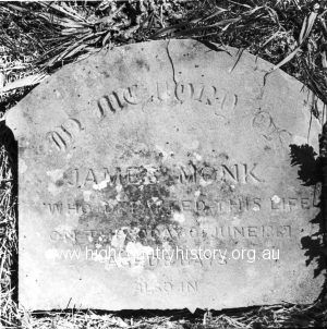 Mansfield Cemetery Headstone. James Monk, died June 1867 (Aged 8 days)