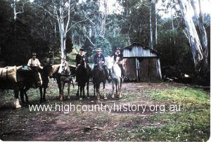Surveying the new road – Brock’s Road. Riders leaving Fry’s hut.