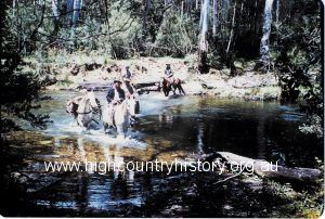 Crossing Howqua River. Surveying the new road – Brocks Road