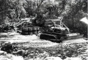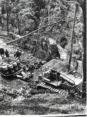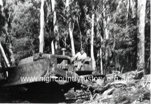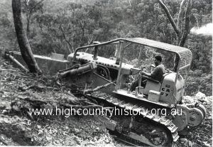 Breaking out Brock’s Road, Howqua area. Jim Sargent driving a Caterpillar D7