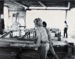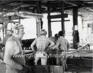 Marbut-Gunnersen Sawmill. Operating automatic log breaking down