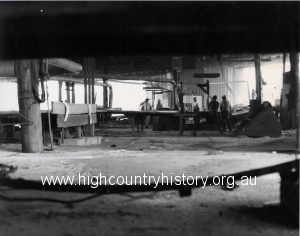 Marbut-Gunnersen Sawmill. Looking through mill from bottom stocking area.