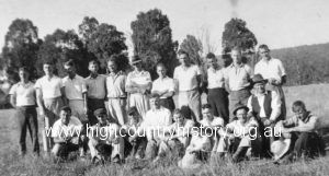 Cricket match. Delatite Sawmill (back row) vs McCashney and Harper Mill (front row)