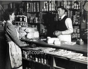 Bonnie Doon Storekeeper Jim Halligan and Mrs P McDonald.
