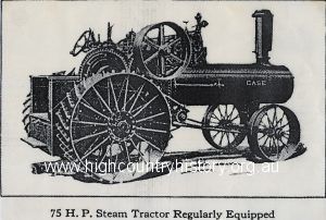 Drawing of a Case 75 H.P. Stream Tractor Regularly Equipped