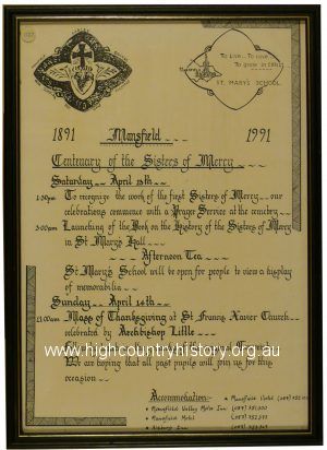 Centenary of the Sisters of Mercy, Mansfield 1891-1991