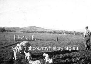 Wally Hill with his ewe and quintuplet lambs, Highton, Mansfield.