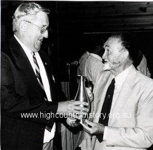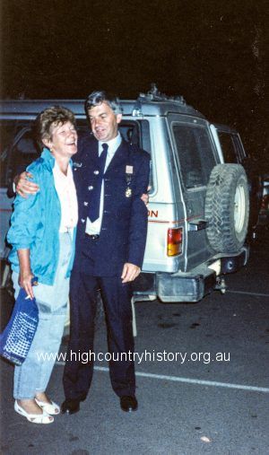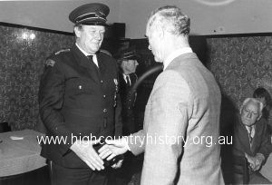 Captain Neil Gardiner of the Mansfield Fire Brigade, receiving the Queen’s Medal from Val Cleary.
