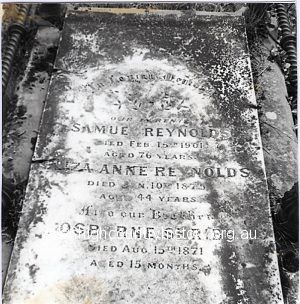 tombstone – cemetery – Samuel Reynolds – Eliza Anne Reynolds – Osborne Shribb